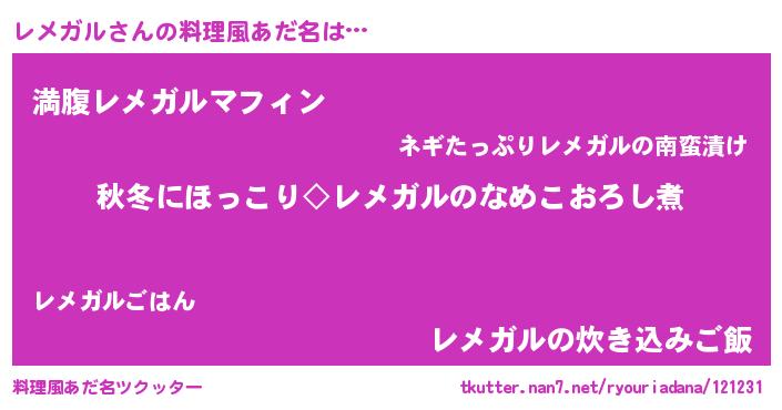 | 男性向けラノベタイトル風あだ名 | 『レメガルに滅ぼされるだけの簡単なお仕事です』 |