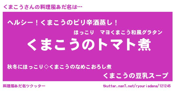 | ヒーロー風カッコイイあだ名 | 『友情の使者くまこう』『炎刃騎士クマ』 |