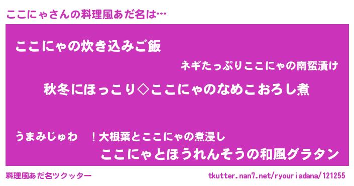 | 意味不明あだ名 | 『ニラ科ここにゃ属』『ペロリンここにゃ』 |