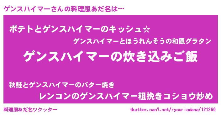 | 胡散臭い通販商品みたいなあだ名 | 『伝統あるサプリメント…その名も「ゲンスハイマー」』 |