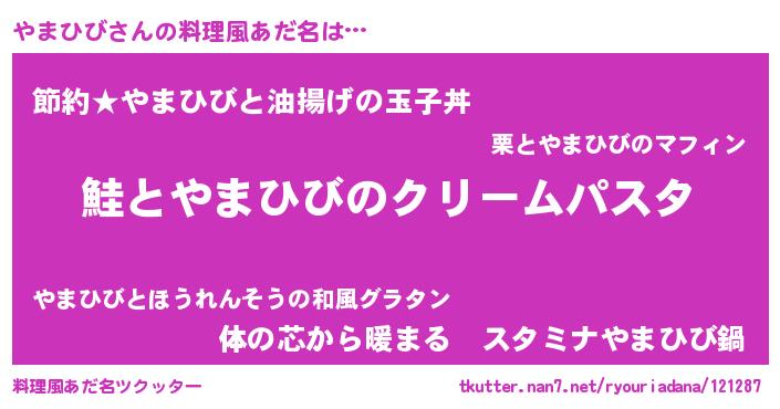 | 女子向けラノベタイトル風あだ名 | 『死神やまひびの再婚』 |