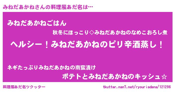 | 意味不明あだ名 | 『自称みねだあかね』 |
