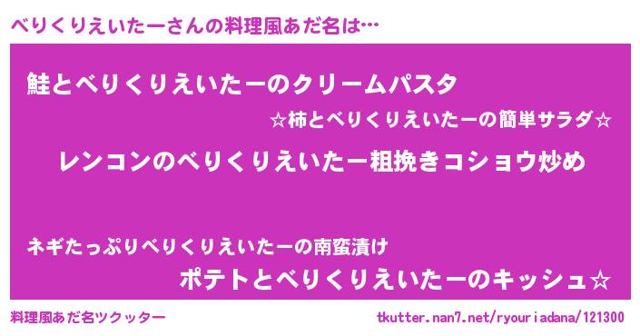 | 意味不明あだ名 | 『自称べりくりえいたー』 |