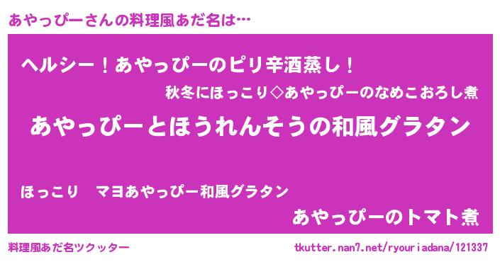 | 胡散臭い通販商品みたいなあだ名 | 『芸能人もオススメする冬虫夏草…その名も「あやっぴー」』 |