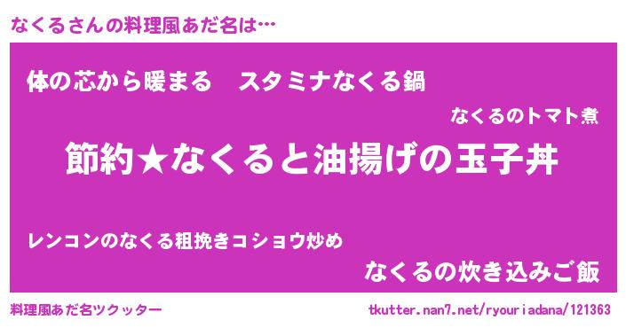 | ヒーロー風カッコイイあだ名 | 『スーパーナクル』『ウルトラなくるマン』 |