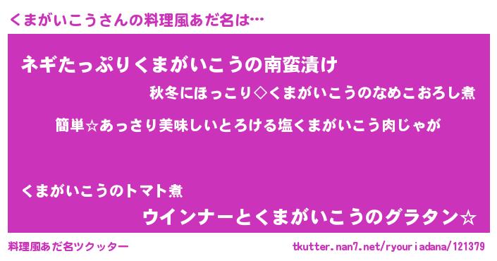 | 意味不明あだ名 | 『永久保存くまがいこう』 |