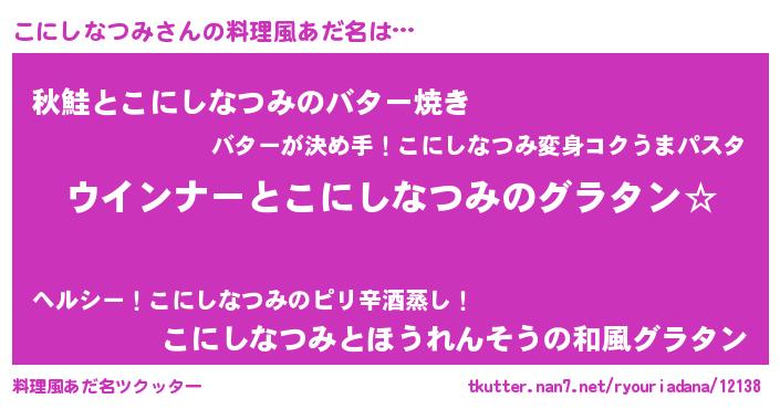 | ファンタジー風あだ名 | 『エターナルコニシナツミー』 |
