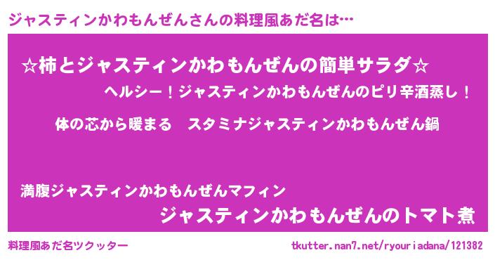 ジャスティンかわもんぜんさんの料理風あだ名をツクッター!