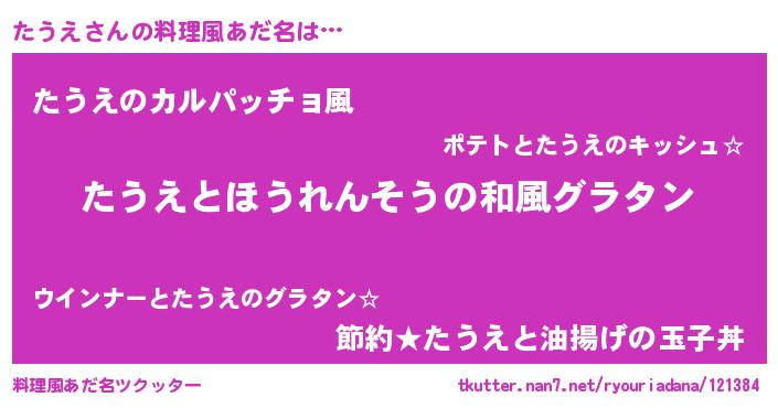 | 男性向けラノベタイトル風あだ名 | 『転生したらたうえだった件』 |