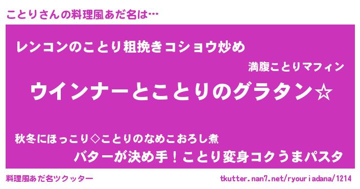 | ヘコむあだ名 | 『なまこ酢』『ことり(爆)』『ことを』 |