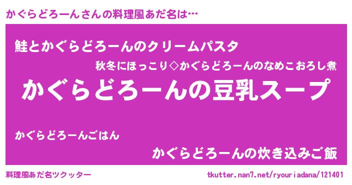 | 意味不明あだ名 | 『とにかく怪しいかぐらどろーん』 |