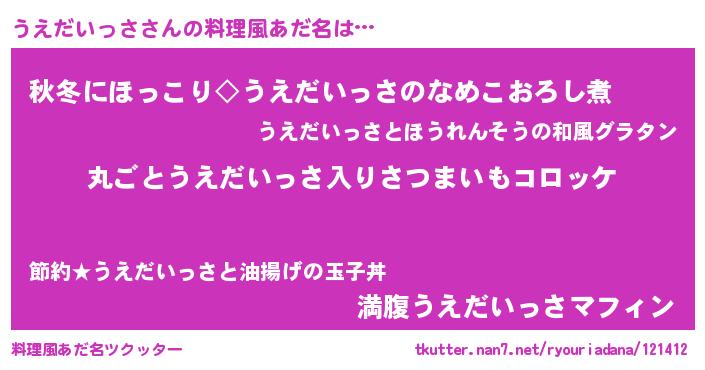 | 女子向けラノベタイトル風あだ名 | 『乙女ゲームの破滅フラグしかない悪役うえだいっさに転生してしまった…』 |