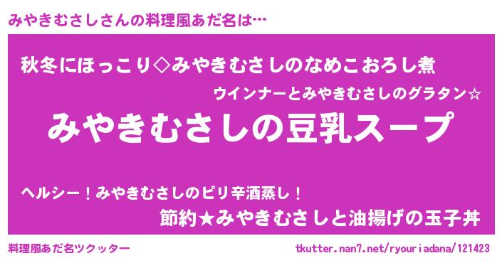 | 意味不明あだ名 | 『とにかく怪しいみやきむさし』 |
