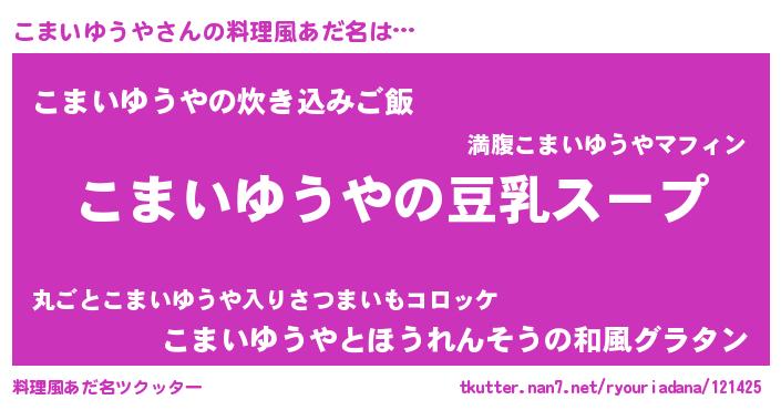 | ヘコむあだ名 | 『こまを』『こまいゆうや(笑)』 |