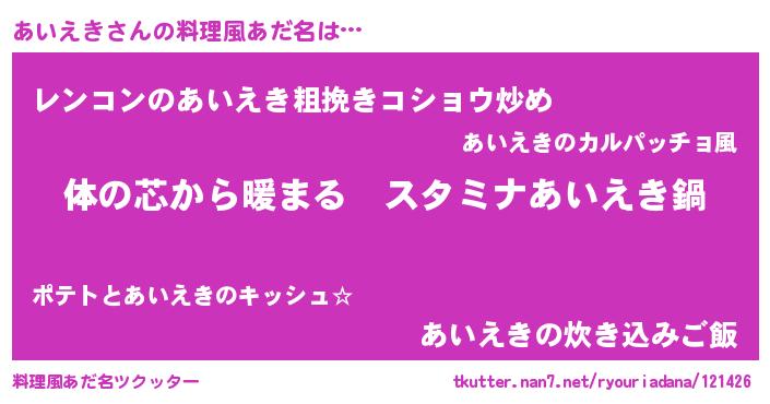 | 自動車の名前っぽいあだ名 | 『アクア』『レクアス』『フェアーイ』 |