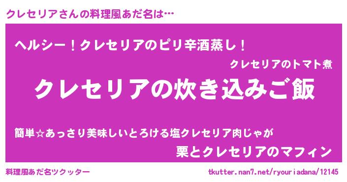 | 意味不明あだ名 | 『自称クレセリア』『永久保存クレセリア』 |