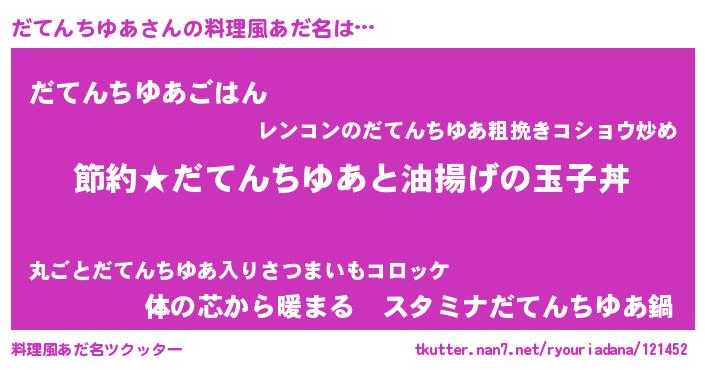 | 男性向けラノベタイトル風あだ名 | 『だてんちゆあの憂鬱』 |