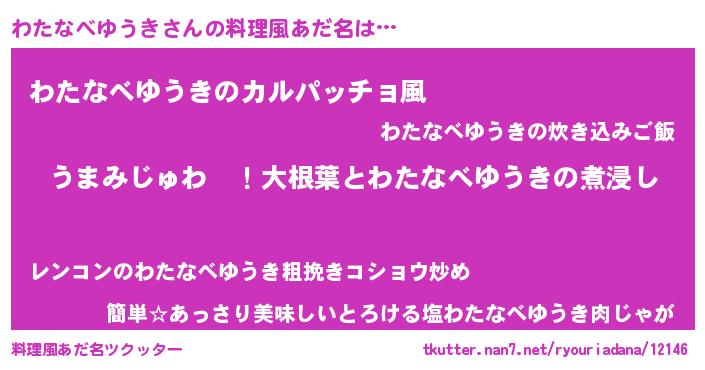 | ポケモン風あだ名 | 『ワタナダネ』『ワータイ』 |