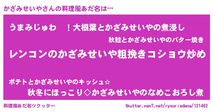 | 意味不明あだ名 | 『自称かざみせいや』 |