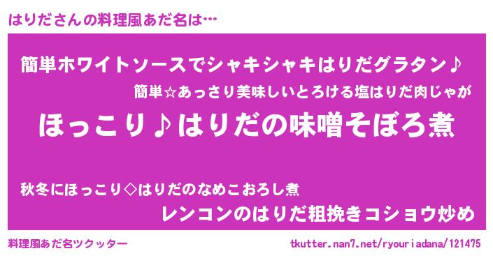| 胡散臭い通販商品みたいなあだ名 | 『必ず成功する水晶球…その名も「はりだ」』 |