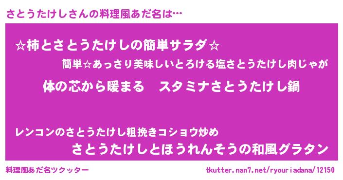 | 男性向けラノベタイトル風あだ名 | 『やはりさとうたけしの青春ラブコメはまちがっている 』 |