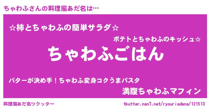 | 胡散臭い通販商品みたいなあだ名 | 『絶対に幸福をもたらす健康食品…その名も「ちゃわふ」』 |