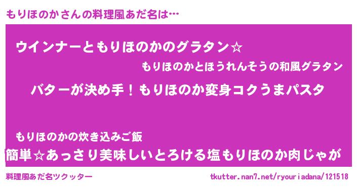| ヘコむあだ名 | 『なまこ酢』『もりほのか(遠い目)』 |