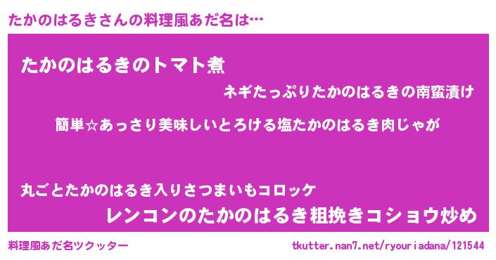 | ヘコむあだ名 | 『たかのはるき(震え声)』『たかっふぃ~』 |