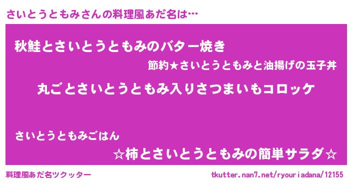 | ヘコむあだ名 | 『さいとうともみ(遠い目)』『さいもー』 |