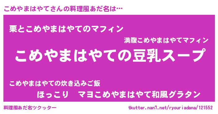 | 女子向けラノベタイトル風あだ名 | 『こめやまはやては平凡を望む』 |