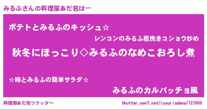 | 意味不明あだ名 | 『とにかく怪しいみるふ』『自称みるふ』 |