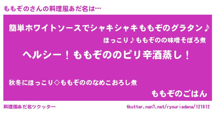 | 男性向けラノベタイトル風あだ名 | 『Re:ももぞのから始める異世界生活』 |