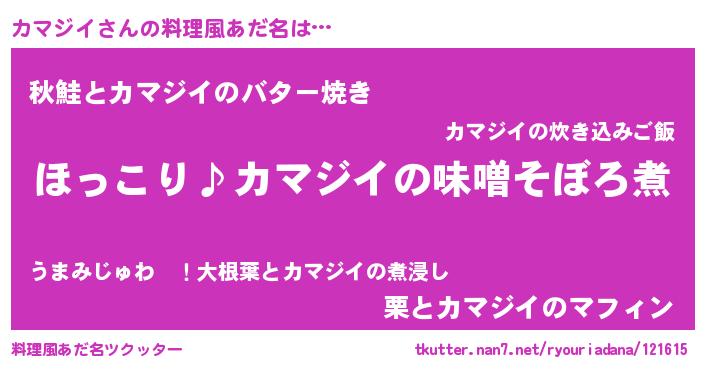 | 男性向けラノベタイトル風あだ名 | 『カマジイの憂鬱』 |