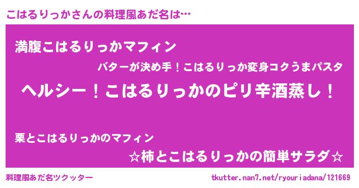 | ヘコむあだ名 | 『こはるりっか(遠い目)』『こはにゅー』 |