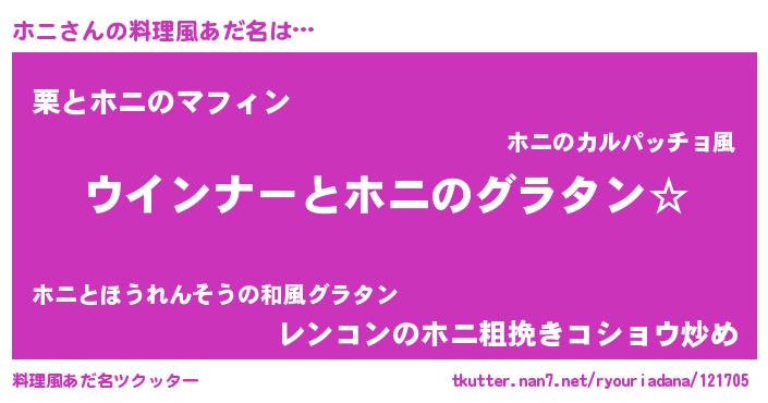 | ヘコむあだ名 | 『なまこ酢』『ホニふぇ~』 |