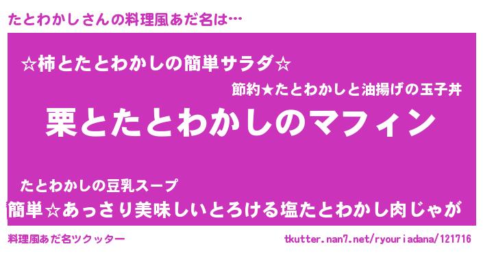 | 胡散臭い通販商品みたいなあだ名 | 『絶対に幸福をもたらす健康食品…その名も「たとわかし」』 |