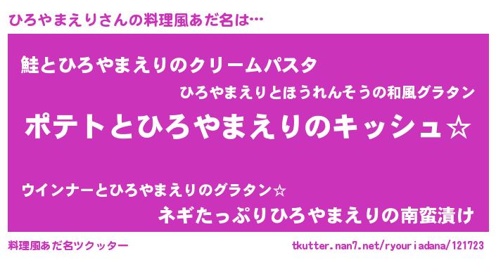 | 男性向けラノベタイトル風あだ名 | 『ひろやまえりの嫁は女の子じゃないと思った?』 |