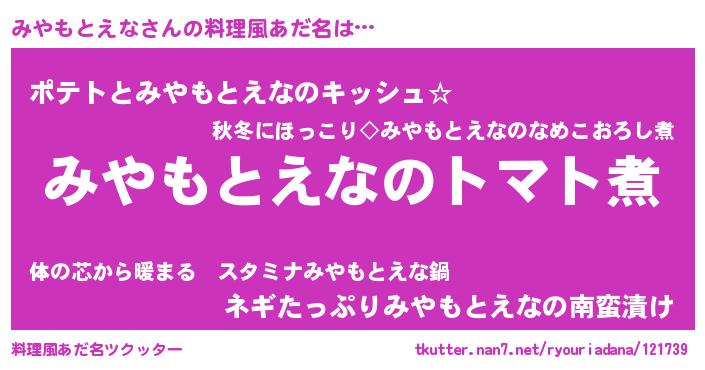 | ヘコむあだ名 | 『みやぷりん』『みやふぇ~』 |