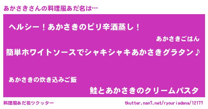 | 男性向けラノベタイトル風あだ名 | 『あかさきの嫁は女の子じゃないと思った?』 |