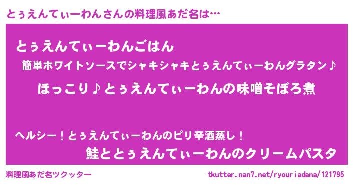 | 意味不明あだ名 | 『ペロリンとぅえんてぃーわん』 |