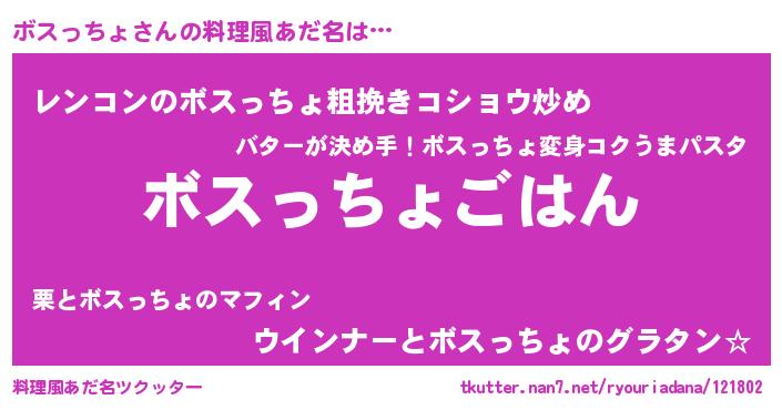 | 胡散臭い通販商品みたいなあだ名 | 『テレビで話題のアガリクス…その名も「ボスっちょ」』 |