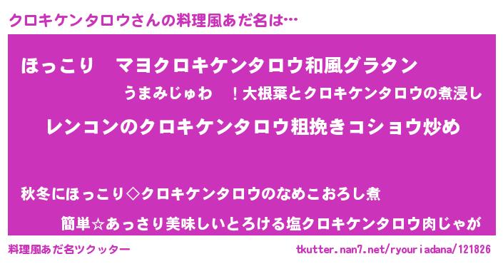 | ヘコむあだ名 | 『クロキケンタロウ(笑)』『酢こんぶ』 |