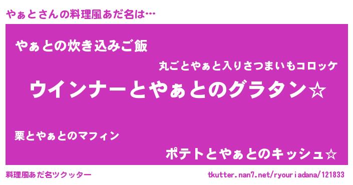 | ヘコむあだ名 | 『豆乳』『やぁっぺ』『やぁと(笑)』 |