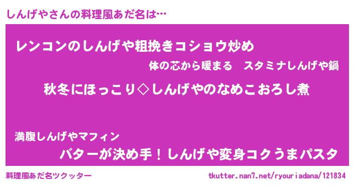 | ヘコむあだ名 | 『酢こんぶ』『しんげや(爆)』 |