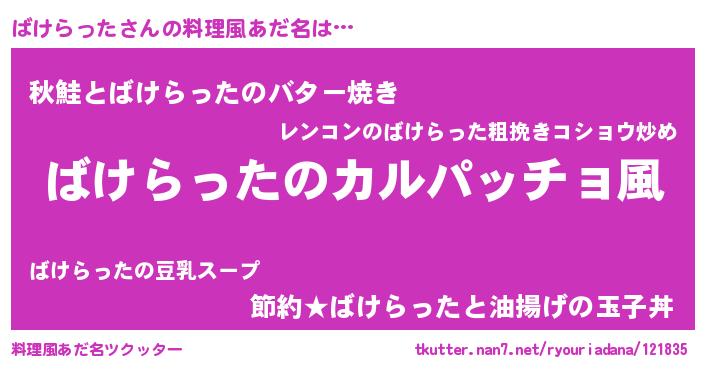 | 意味不明あだ名 | 『住所不定無職ばけらった(3歳)』 |