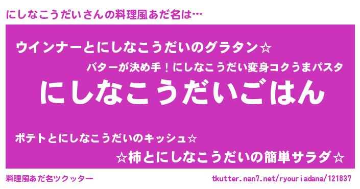 | 胡散臭い通販商品みたいなあだ名 | 『世界が平和になる高級そうな壺…その名も「にしなこうだい」』 |