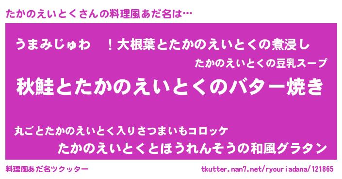 | ヘコむあだ名 | 『たかのえいとく(遠い目)』『酢こんぶ』 |