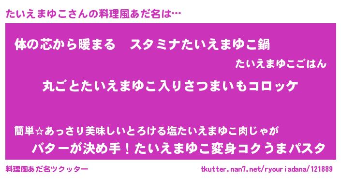 | 男性向けラノベタイトル風あだ名 | 『この素晴らしい世界にたいえまゆこを!』 |