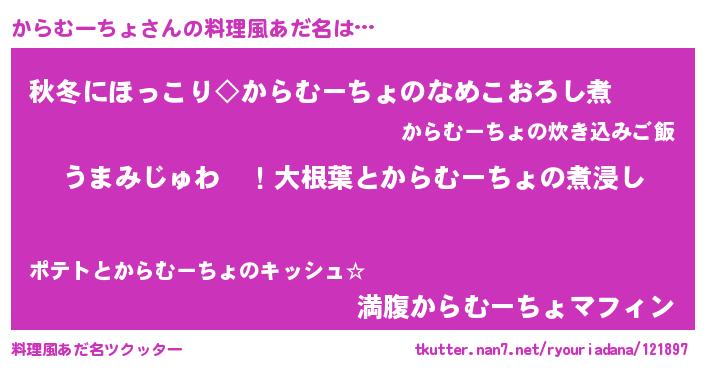 | 女子向けラノベタイトル風あだ名 | 『からむーちょの婚約者』 |