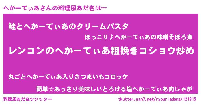 | 意味不明あだ名 | 『自称へかーてぃあ』 |